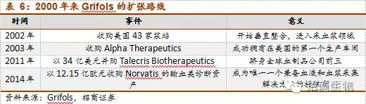 1995年Grifols的西班牙工廠和白蛋白獲得FDA認(rèn)證和批文。2002年Grifols收購(gòu)了美國(guó)43家漿站,開始了垂直整合。2003年Grifols收購(gòu)了AlphaTherapeutics,擁有了在美國(guó)的第一個(gè)生產(chǎn)車間。2006年其IVIG獲得FDA批文,公司股票在西班牙交易所上市。2011年Grifols收購(gòu)Talecris,并在Nasdaq上市。2014年Grifols收購(gòu)了Norvatis的輸血類器械資產(chǎn)。